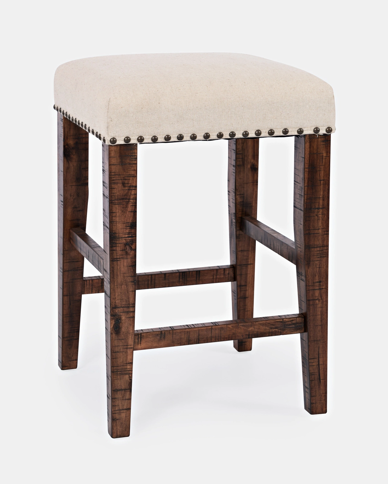 Stół został wykonany z trwałego drewna akacji oraz forniru, co gwarantuje jego wytrzymałość i solidność na lata użytkowania. Blat stołu zdobi unikatowa intarsja w postaci wzoru w jodełkę, która w połączeniu z modnymi przetarciami w stylu shabby chic podkreśla jego rustykalny, a jednocześnie elegancki charakter. Komfort siedzenia zapewniają hokery z siedziskami tapicerowanymi tkaniną składającą się w 55% z bawełny i 45% lnu, wypełnione pianką o dużej gęstości, co gwarantuje wygodę nawet podczas długich spotkań.