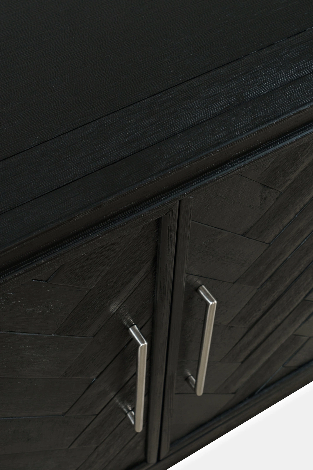 Komoda została wykonana z naturalnego drewna akacji oraz pokryta trwałym fornirowym wykończeniem, co gwarantuje nie tylko wyjątkowy wygląd, ale także odporność na zarysowania i codzienne użytkowanie. Solidna konstrukcja i stabilna masa 28,5 kg zapewniają bezpieczeństwo i wygodę użytkowania przez wiele lat. Czarne wykończenie z metalowymi uchwytami podkreśla nowoczesny charakter mebla i sprawia, że jest on jednocześnie neutralny, pasując do różnych stylów aranżacji.