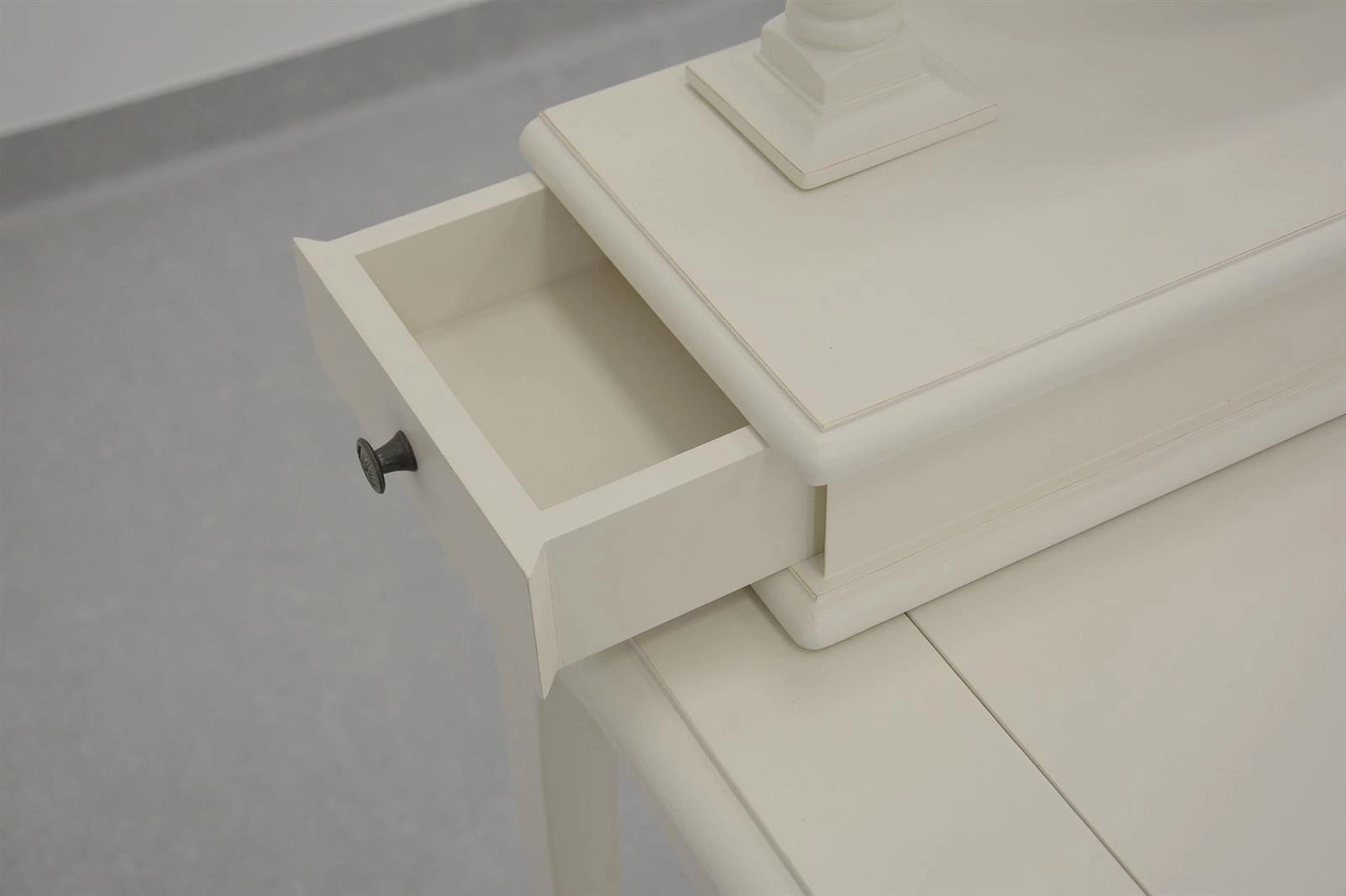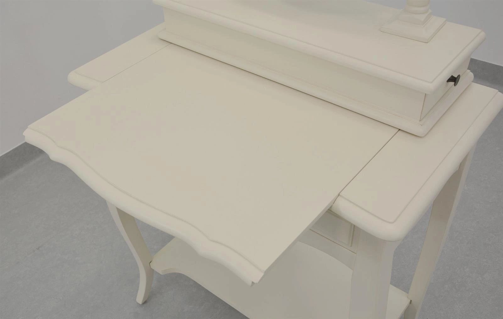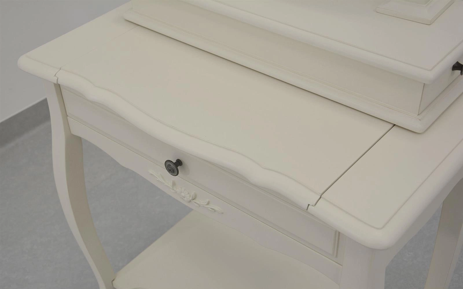 Szafka wyposażona jest w trzy praktyczne szuflady oraz jedną pojemną półkę, które umożliwiają uporządkowanie wielu rzeczy i zachowanie porządku w domu. Jej unikalnym elementem jest wbudowane lustro stojące, które dodaje lekkości bryle mebla i zwiększa jego funkcjonalność, sprawiając, że szafka świetnie sprawdzi się nie tylko w salonie czy sypialni, ale także w przedpokoju.