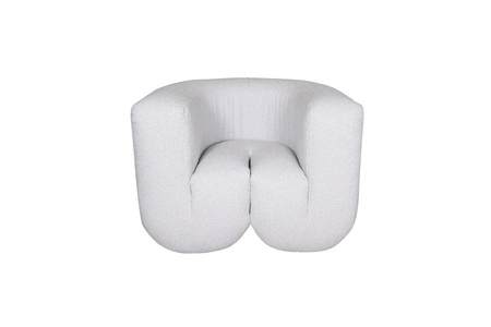 Fotel wykonany jest z tkaniny szenilowej supełkowej, charakteryzującej się niejednolitym kolorem i asymetryczną fakturą. Dzięki temu każdy egzemplarz posiada unikalny charakter, który dodaje wnętrzu przytulności i oryginalności. Jasnoszary melanż z białymi tonami to kolorystyka, która doskonale współgra zarówno z jasnymi, jak i ciemniejszymi aranżacjami, gwarantując ponadczasowy styl.
