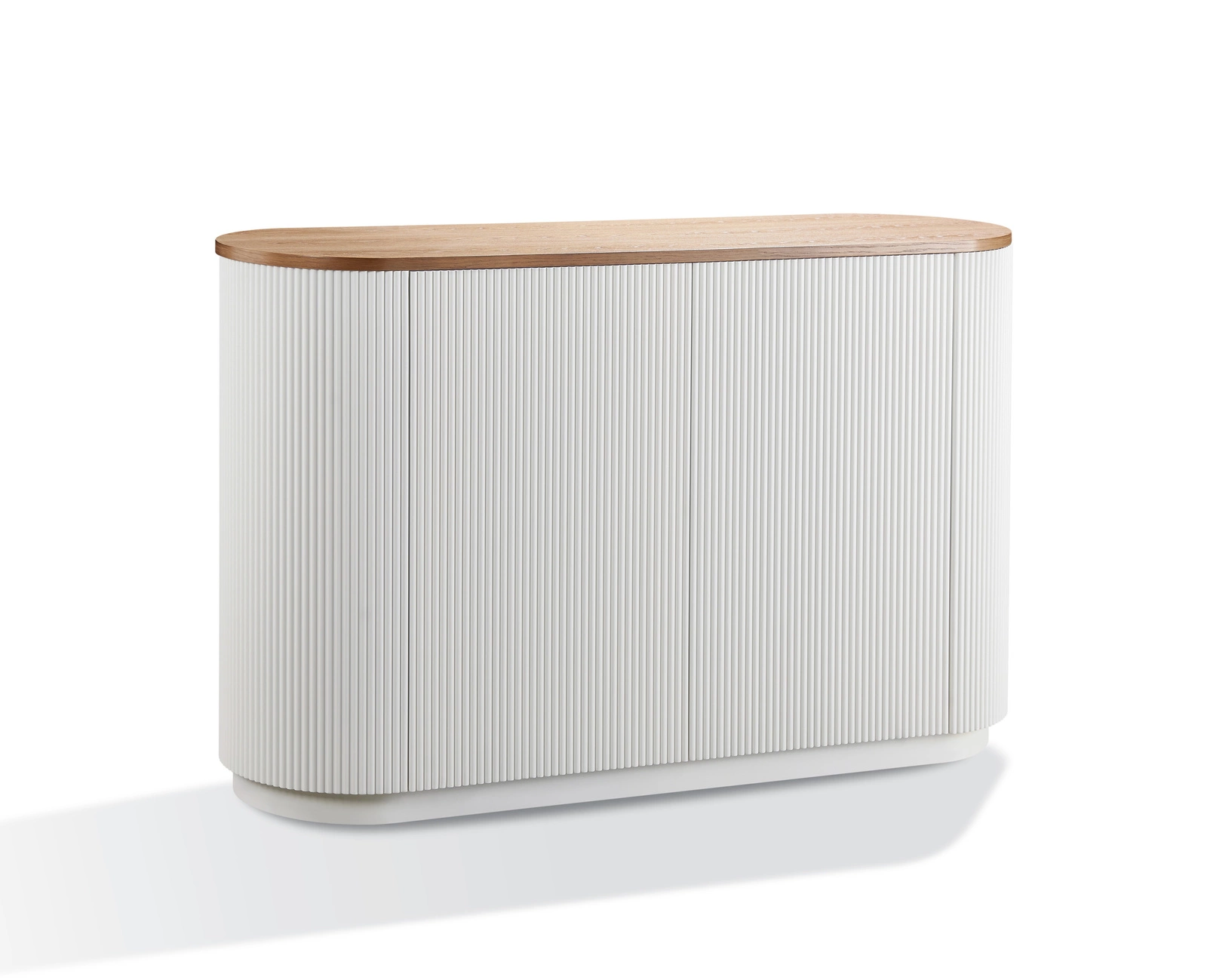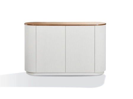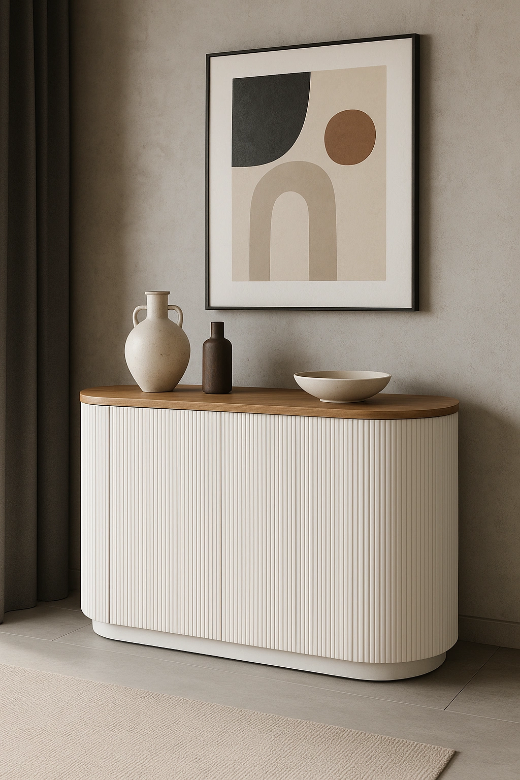 Projekt komody Stilig ST582 podkreśla naturalną urodę drewna dzięki ryflowanym detalom oraz widocznej strukturze drewna na blacie i wieńcu. Jasny blat wykonany z drewna wiązu nadaje meblowi niepowtarzalnego charakteru, dodając ciepła i naturalności każdemu wnętrzu. Komoda nie tylko spełnia funkcję praktyczną, ale także stanowi stylowy element dekoracyjny, który podkreśli walory Twojego salonu, sypialni czy przedpokoju.