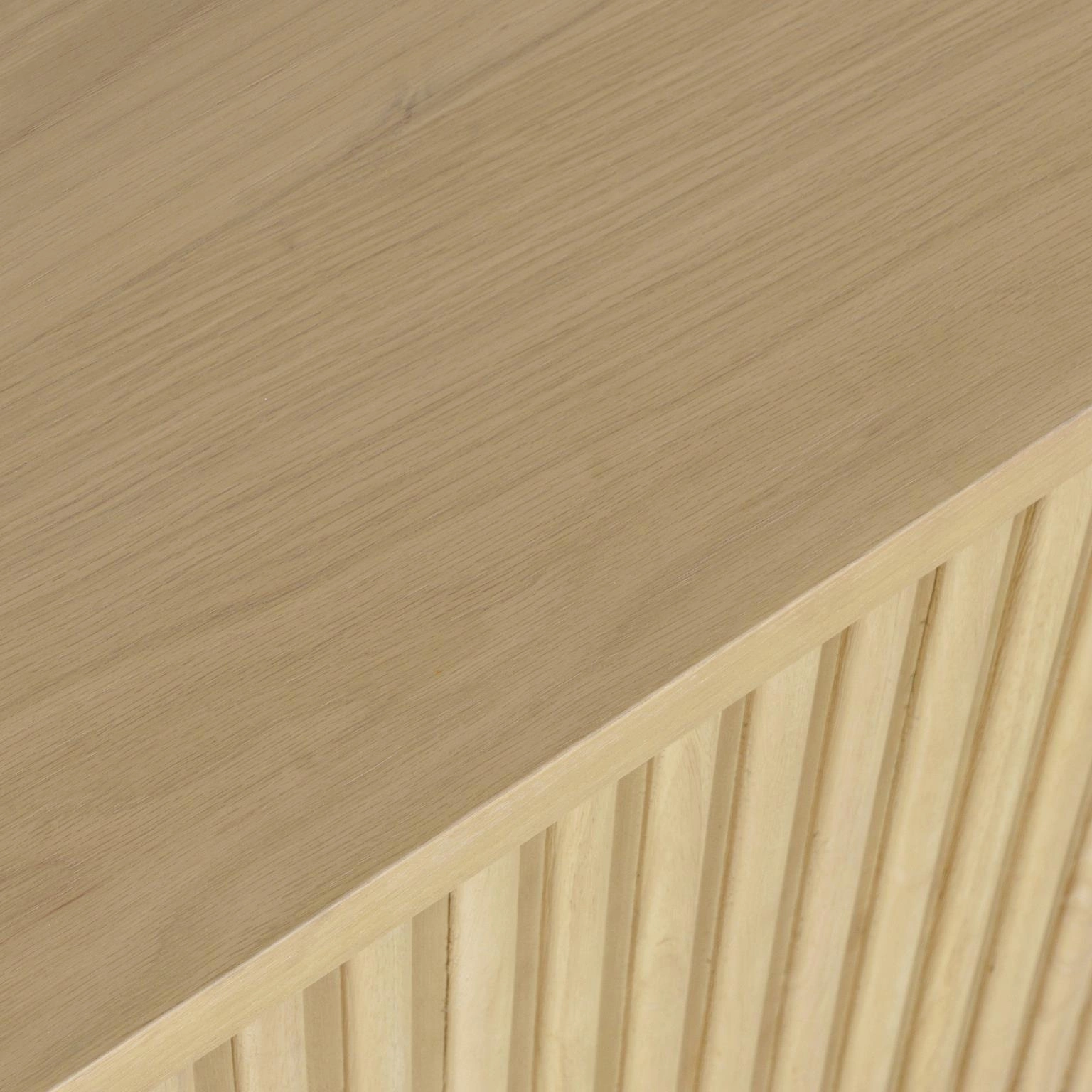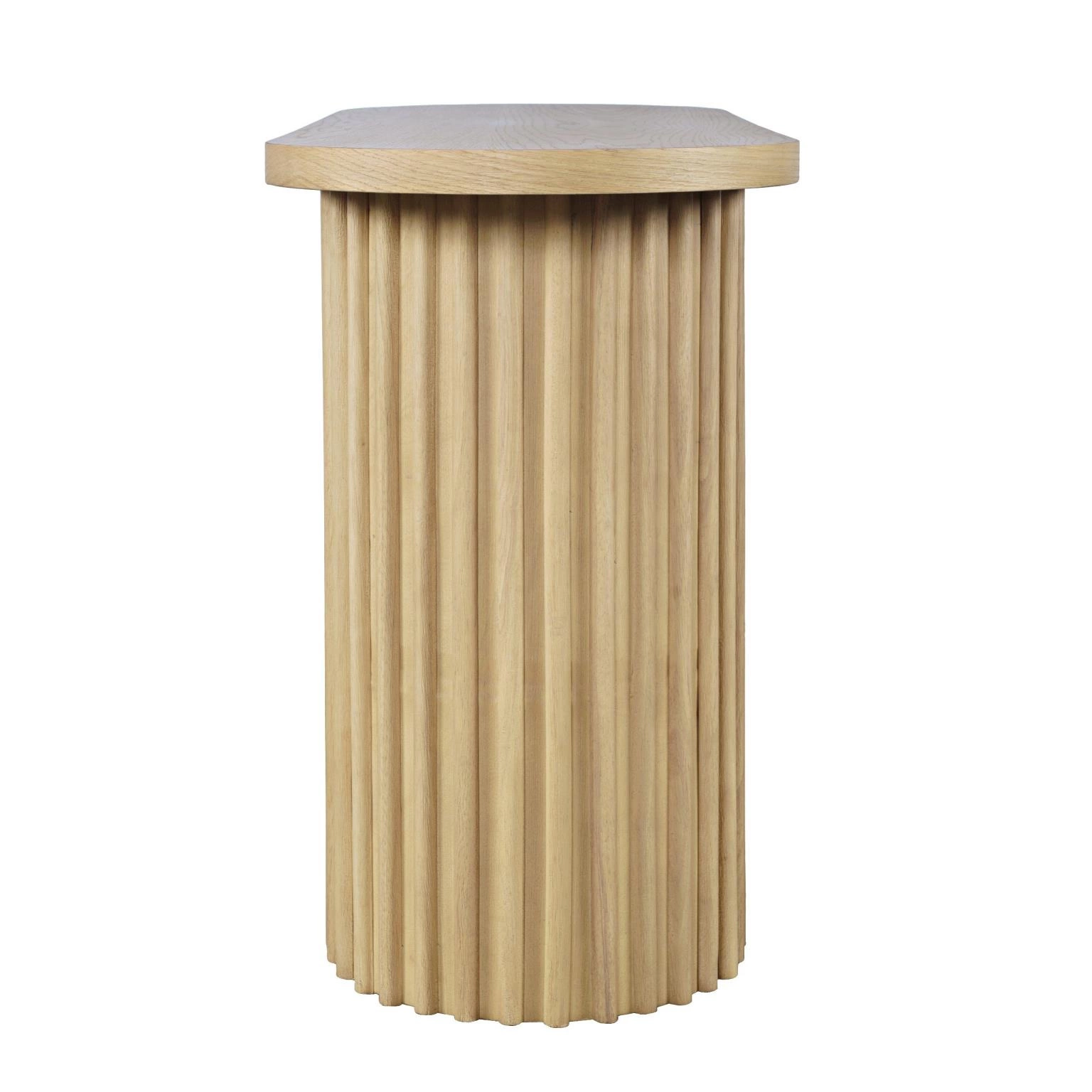 Konsola Avola wyróżnia się nie tylko trwałością, ale także precyzyjnym wykonaniem detali. Ryflowane drewno dodaje subtelnej faktury, która pięknie współgra z naturalnym wyglądem powierzchni. Proporcje blat 127 x 46,5 cm zapewniają odpowiednią przestrzeń do ekspozycji dekoracji, a jednocześnie nie dominują przestrzeni w pomieszczeniu. Dzięki zastosowaniu jasnych, lekkich tonów drewna, konsola doskonale komponuje się zarówno z nowoczesnymi, jak i klasycznymi aranżacjami wnętrz.