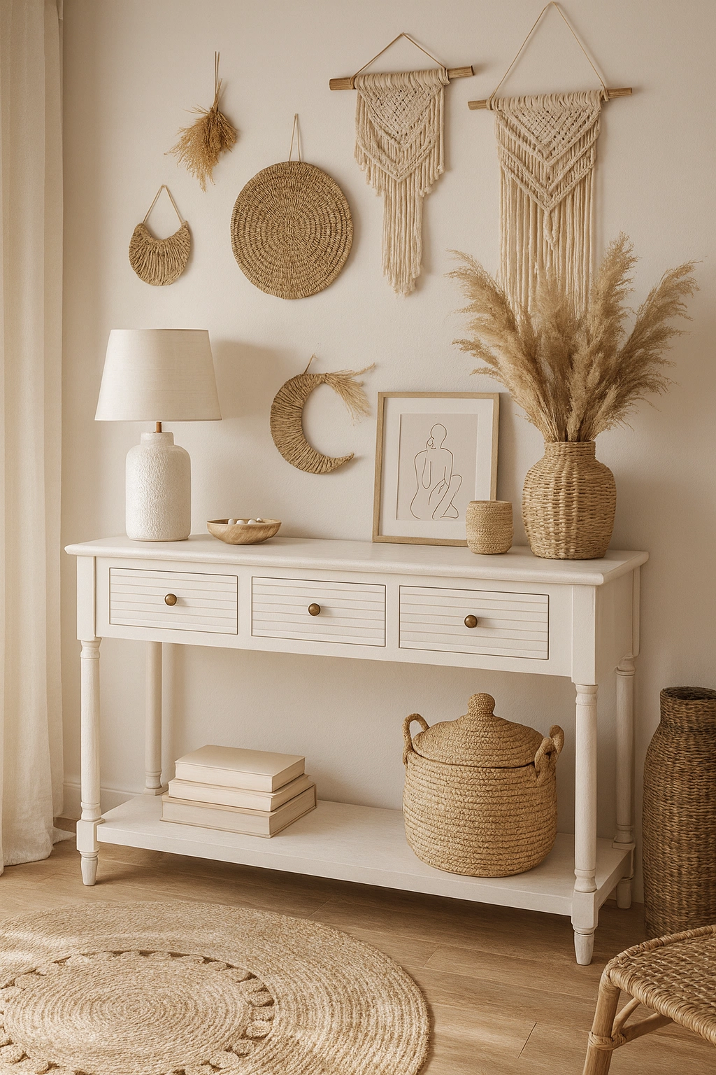Konsola biała z szufladami Livorno LIV080-W to uniwersalny mebel, który dzięki swojemu designowi i funkcjonalności znajduje miejsce w różnorodnych aranżacjach wnętrz. Sprawdzi się w stylu skandynawskim, rustykalnym oraz vintage. Może stanowić eleganckie uzupełnienie salonu, gdzie posłuży jako miejsce na dekoracje i drobiazgi. W przedpokoju ułatwi organizację codziennych niezbędników, a w sypialni będzie praktycznym meblem do przechowywania. Ze względu na kompaktowe rozmiary i lekką konstrukcję sprawdzi się również w mniejszych pomieszczeniach, nie zabierając przy tym cennej przestrzeni.