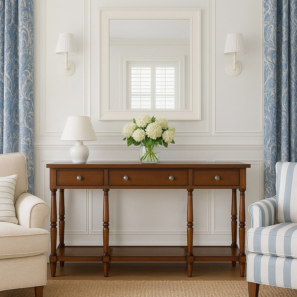 Konsola brązowa z szufladami Avola AV1632-60 to inwestycja w wysokiej jakości, ponadczasowy mebel, który nada każdemu wnętrzu wyjątkowego klimatu i funkcjonalności.
