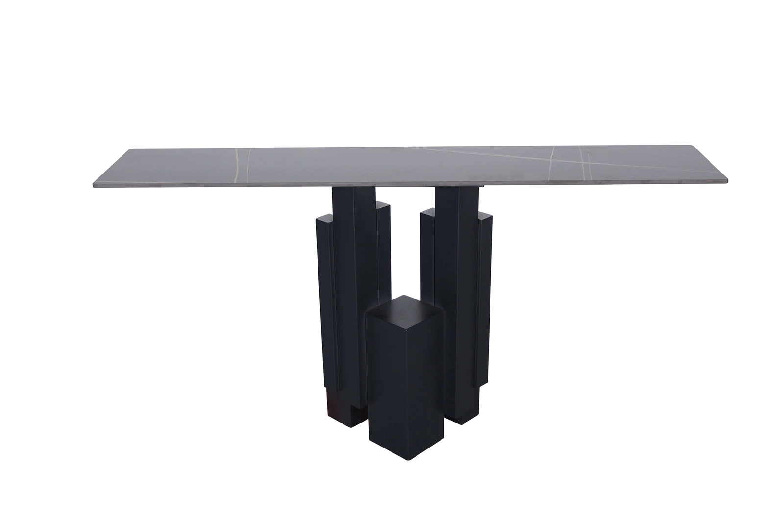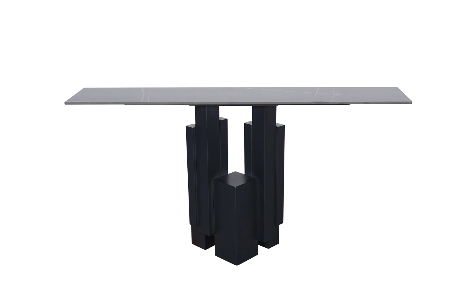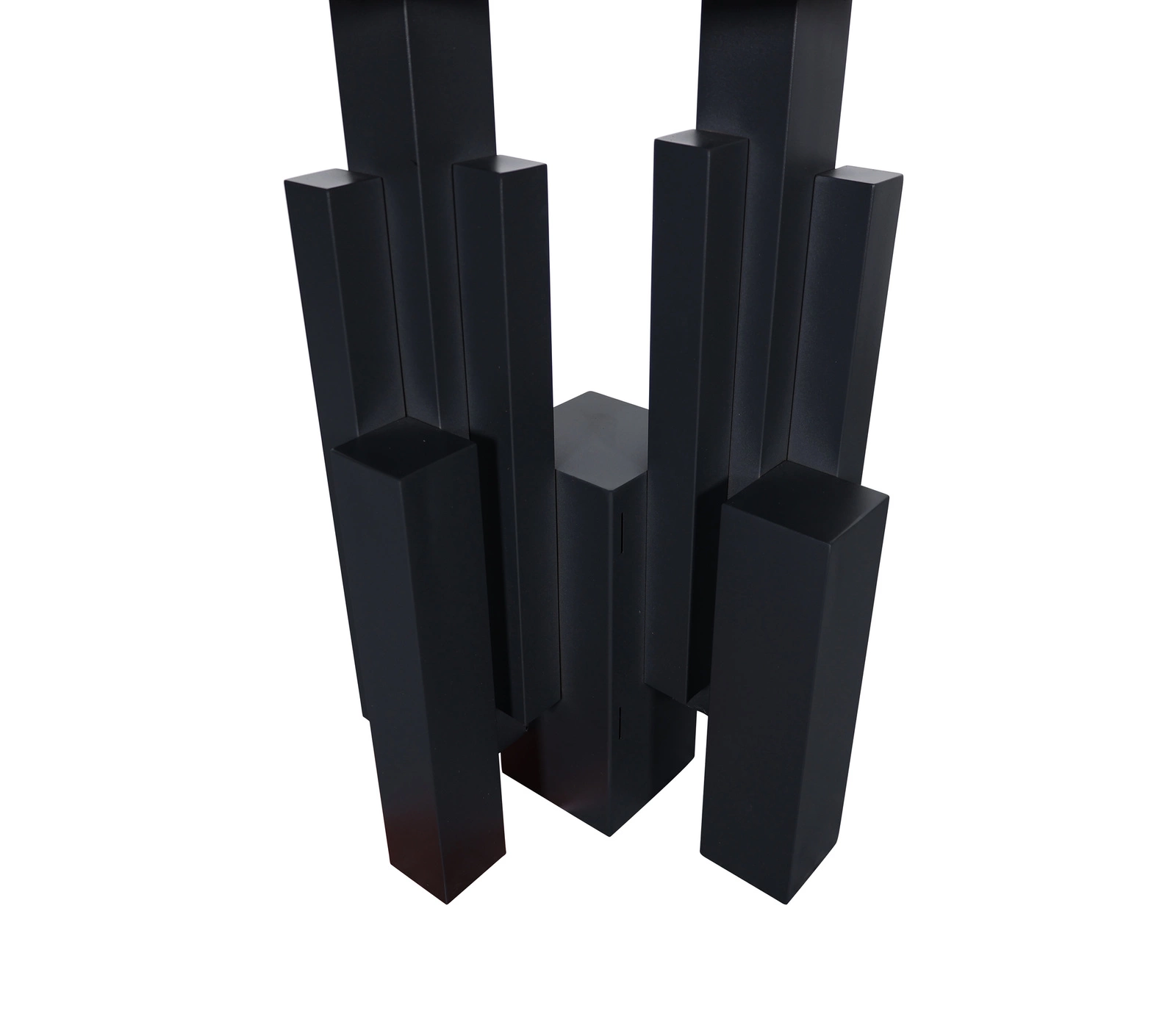 Czarny kolor zarówno blatu, jak i nóg konsoli sprawia, że mebel można łatwo wkomponować w różnorodne style aranżacyjne – od nowoczesnych wnętrz po bardziej klasyczne przestrzenie. Geometryczny kształt nóg wnosi do pomieszczenia artystyczny akcent, który podkreśli indywidualny charakter każdego mieszkania czy biura.