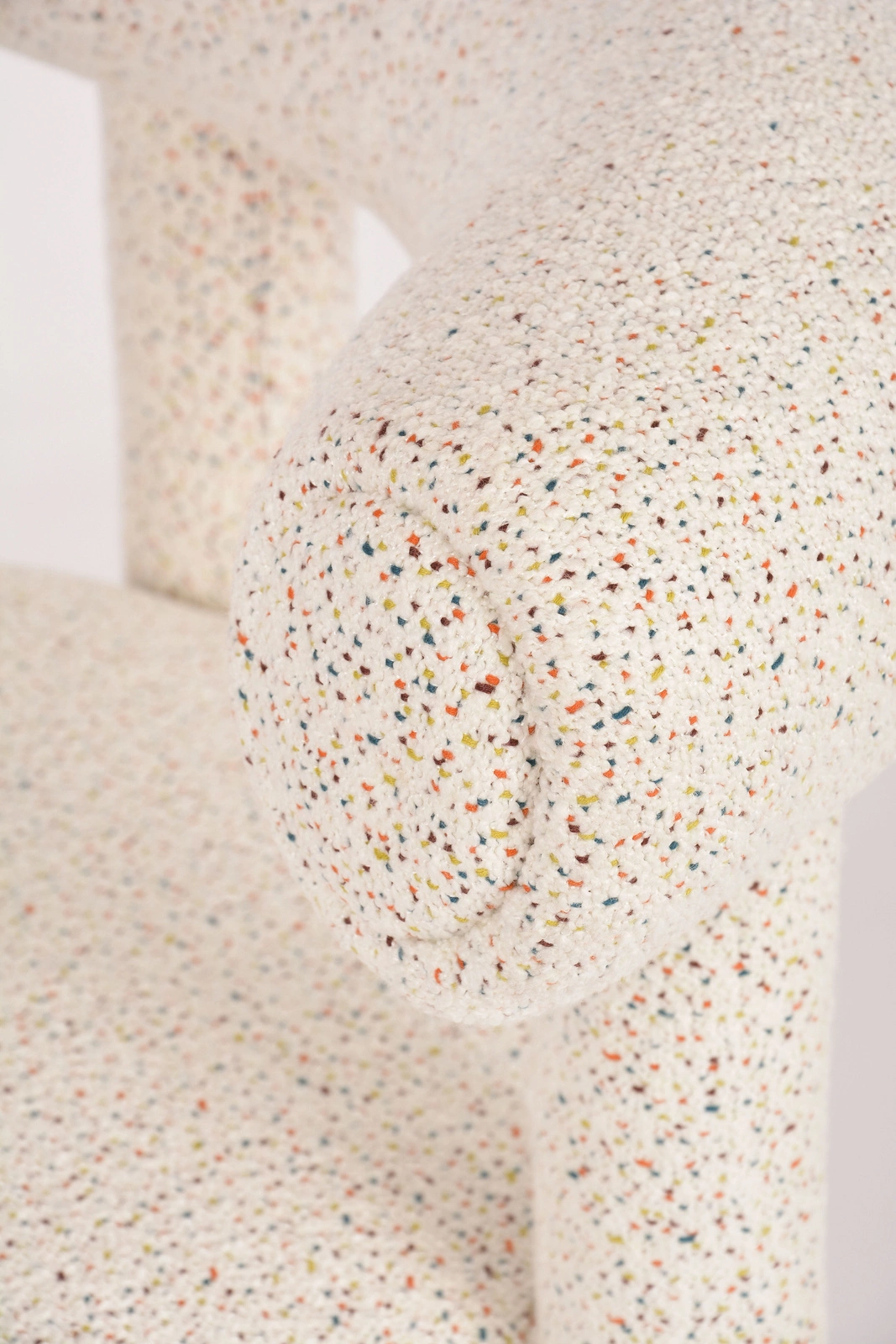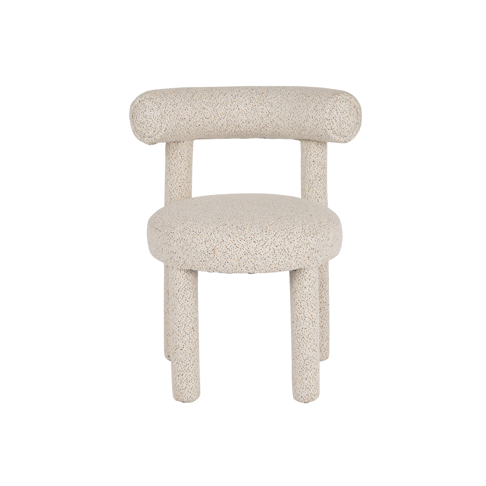 Szerokość krzesła wynosi 62 cm, głębokość 58 cm, a wysokość 80 cm, co gwarantuje komfortową przestrzeń do siedzenia. Waga krzesła to tylko 4,5 kg, dzięki czemu jest łatwe do przenoszenia i ustawiania według potrzeb. Solidna baza z topolowej sklejki zapewnia stabilność i wytrzymałość. Całość utrzymana jest w delikatnej kolorystyce, która doskonale komponuje się z neutralnymi i naturalnymi aranżacjami wnętrz.