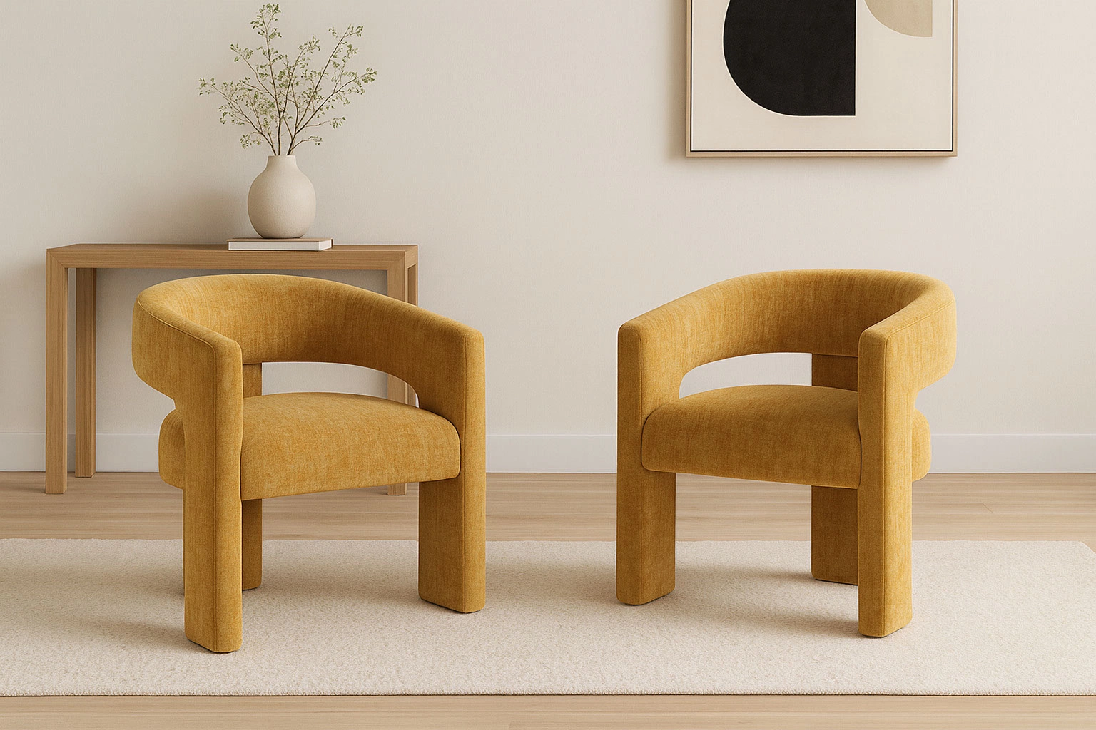 Krzesło tapicerowane żółte Leith LET71OG to idealne połączenie stylu, wygody i funkcjonalności. Modny kolor złotego pomarańcz, wysoka jakość wykonania i przemyślana konstrukcja czynią z niego mebel, który stanie się ozdobą każdego wnętrza. Wybierz produkt LIVIN HILL, jeśli szukasz trwałego i efektownego krzesła na lata.