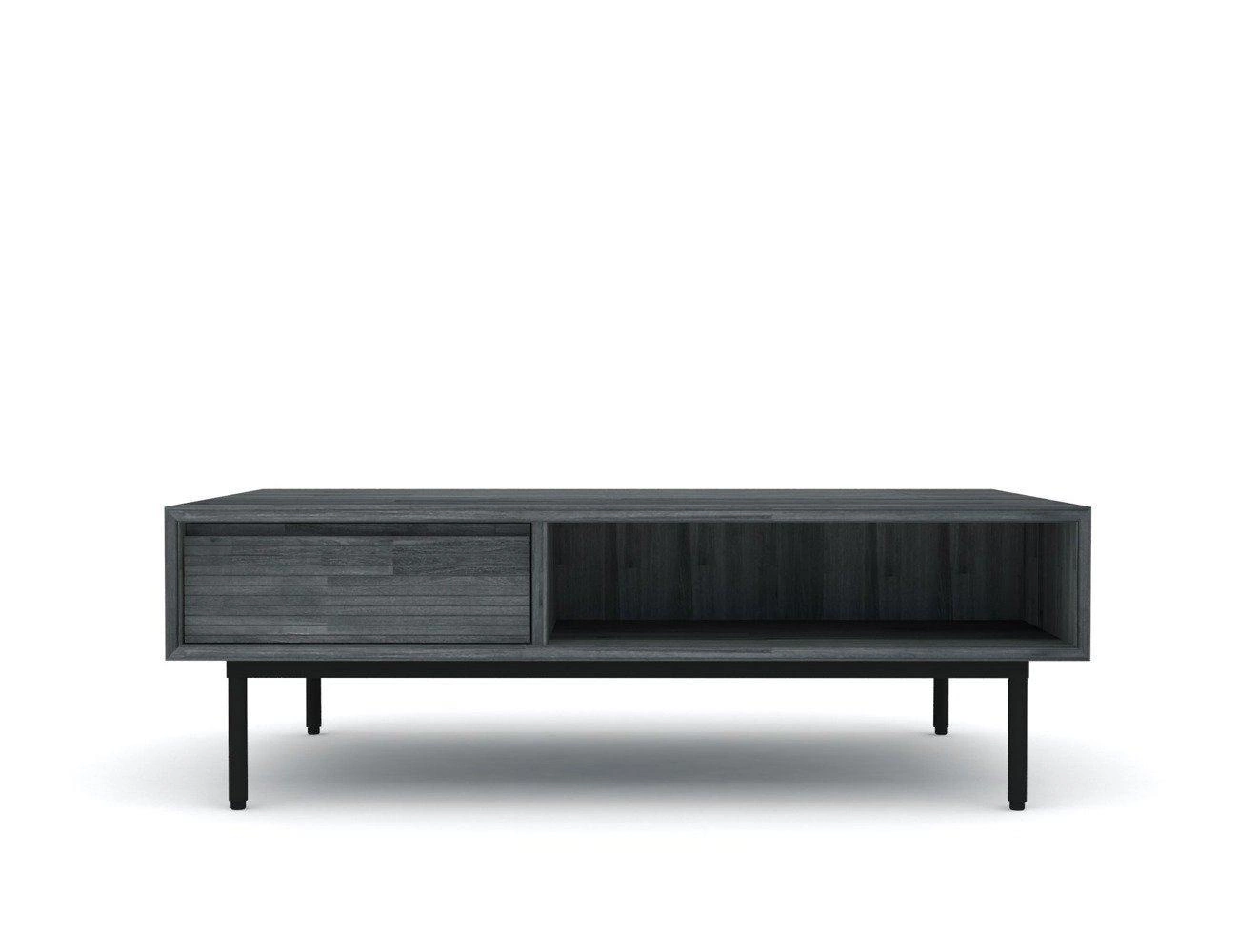 Unikalne wykończenie stolika kawowego Capella CAPL06 wynika z zastosowania drewna akacji o wyrazistej strukturze, które nadaje meblowi naturalnego charakteru. Połączenie tego surowca z MDF w odcieniu Tundra Grey oraz nowoczesnych, lakierowanych nóg w kolorze ciemny grafit tworzy wyjątkowy efekt wizualny. Ten zestaw materiałów sprawia, że stolik staje się centralnym elementem przestrzeni, który przyciąga uwagę i wzbogaca wystrój każdego salonu.