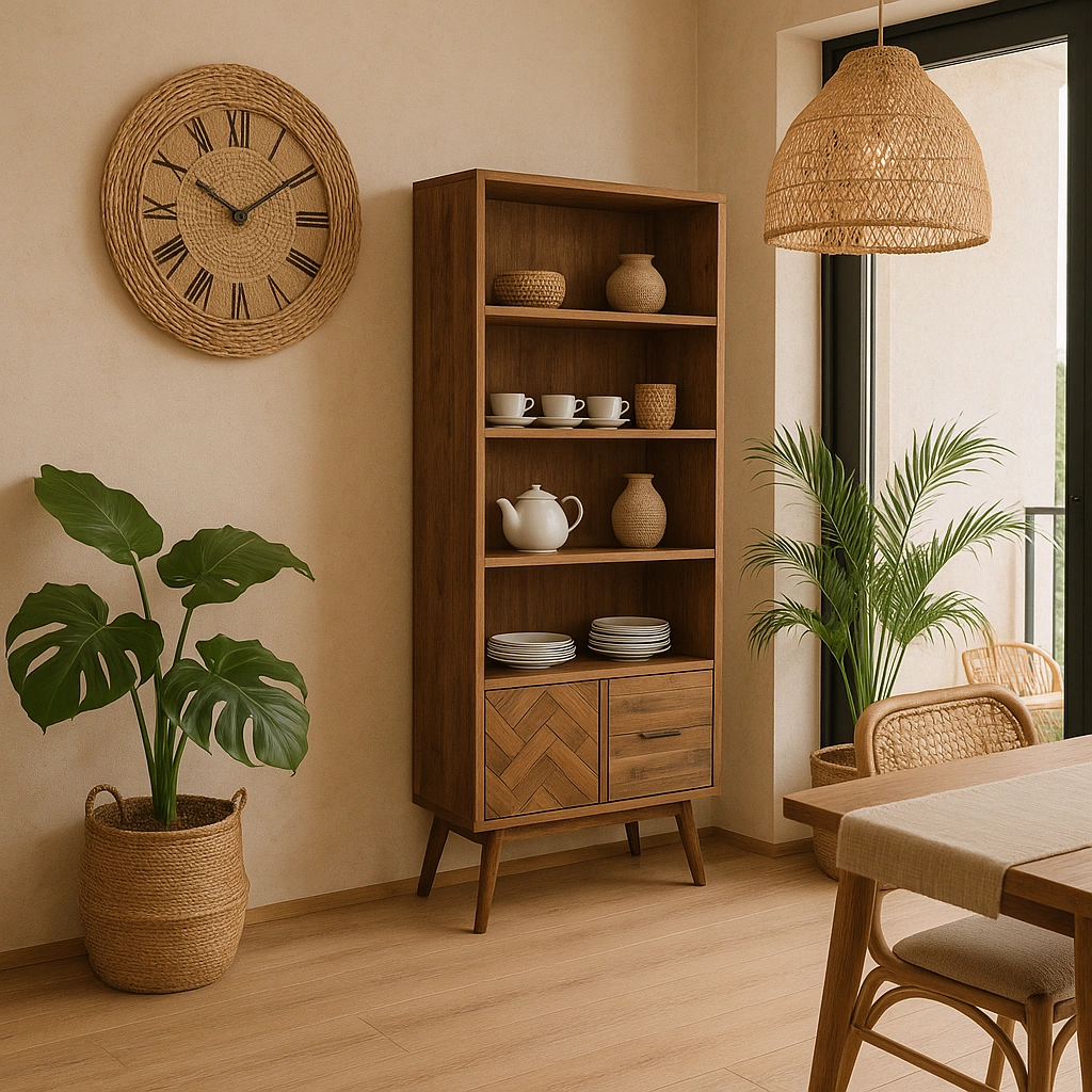 Regał wysoki z pułkami Ashton ASTL02 to połączenie wysokiej jakości wykonania z unikalnym designem i praktycznością. Wykonany z naturalnego drewna akacji, z metalowymi detalami oraz intarsjowanymi frontami, stanie się nie tylko funkcjonalnym meblem, ale również stylową ozdobą wnętrza. Gotowy do użycia od razu po rozpakowaniu, spełni oczekiwania nawet najbardziej wymagających użytkowników.
