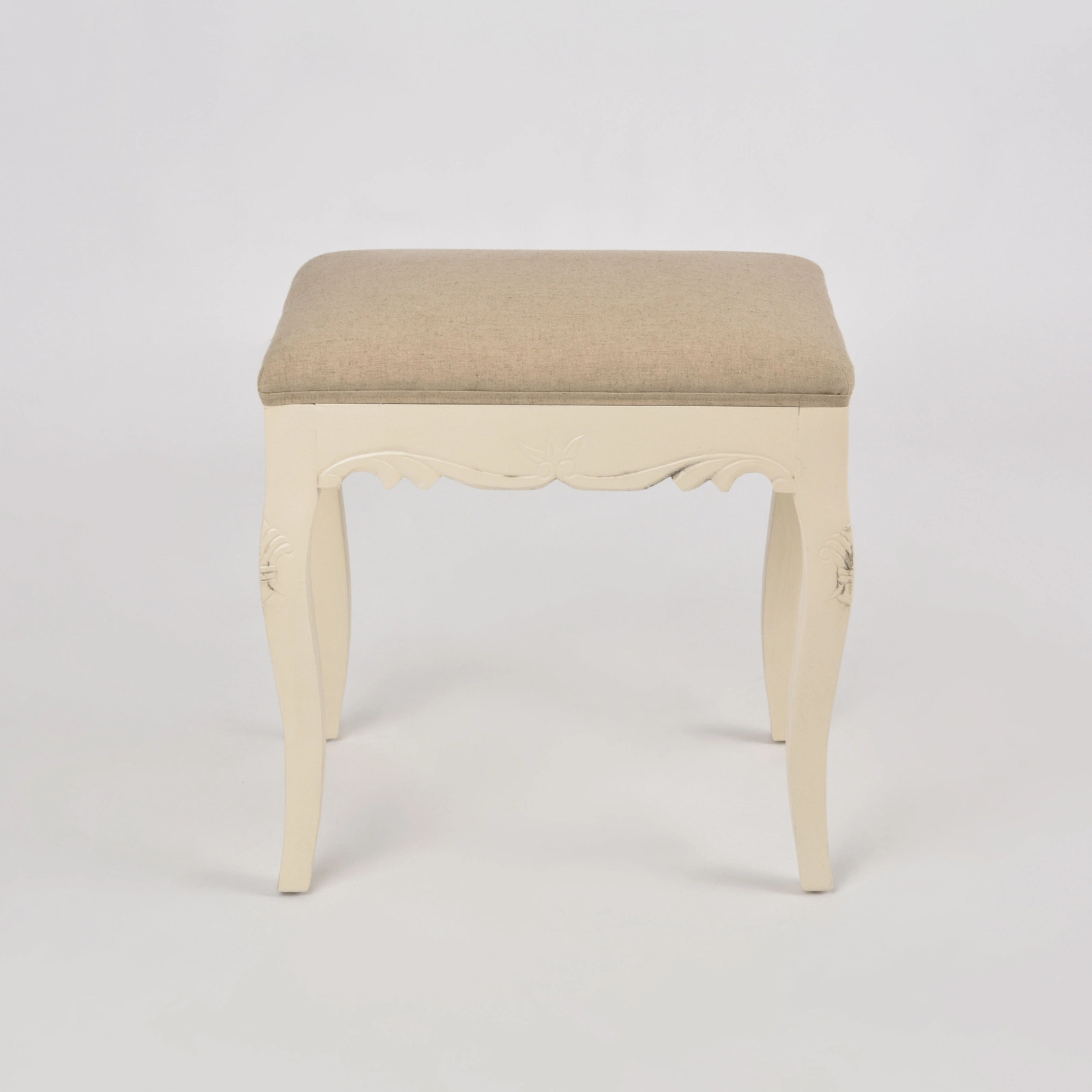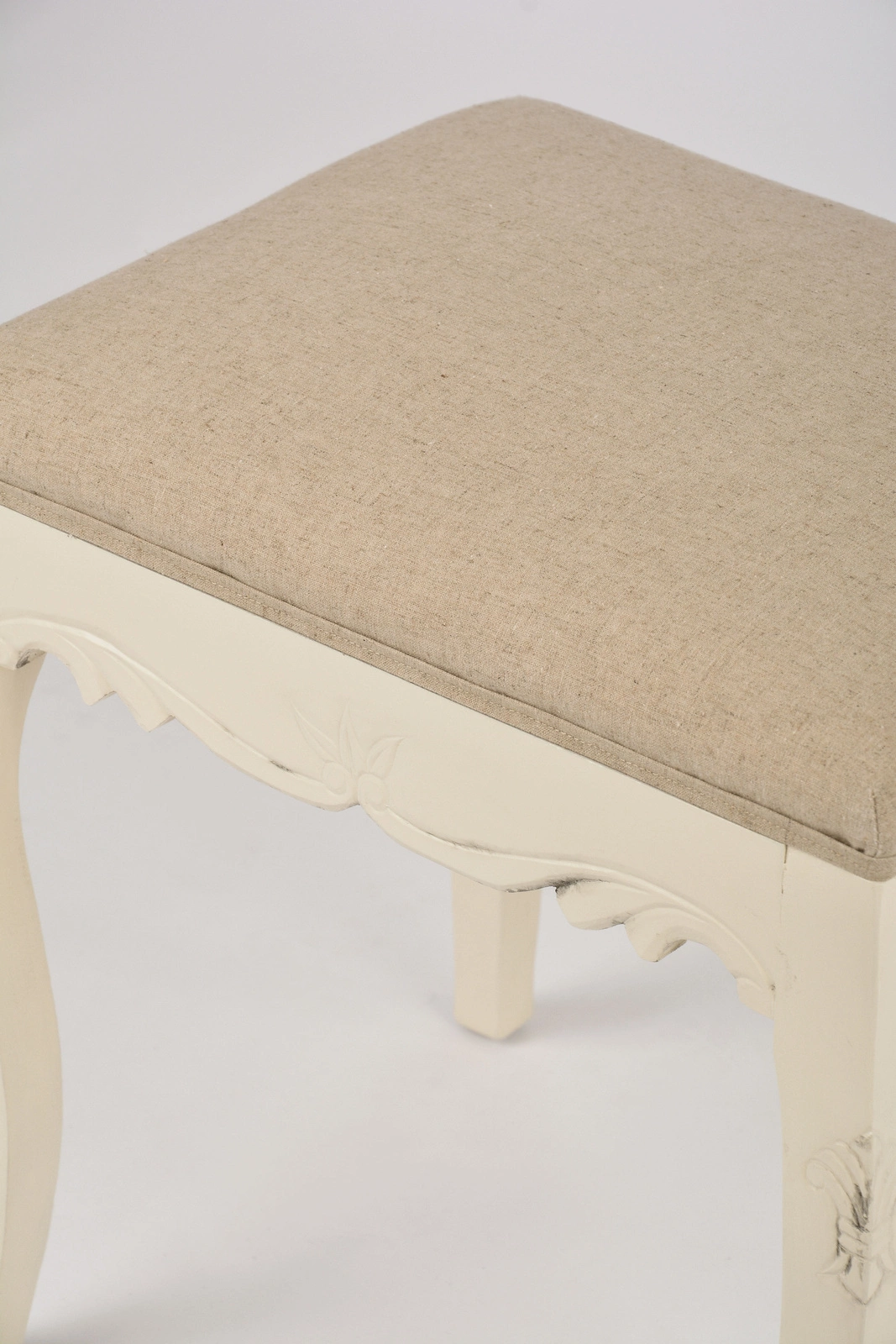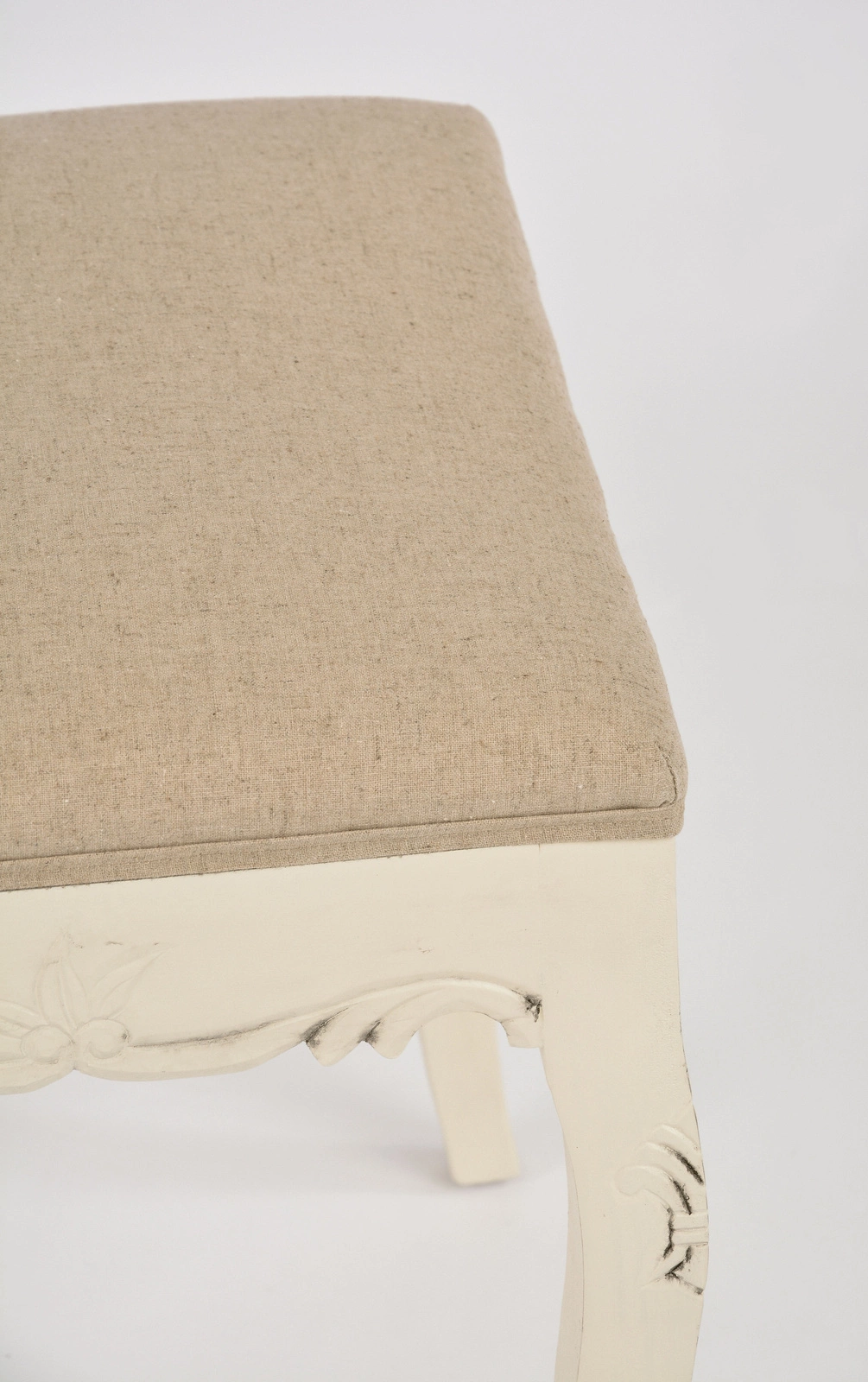 Siedzisko zostało wykonane z drewna paulowni oraz płyty MDF, co przekłada się na lekkość i jednocześnie wytrzymałość. Jego wymiary – 45 cm szerokości, 35 cm głębokości oraz 49 cm wysokości – sprawiają, że jest niezwykle wygodne i praktyczne w codziennym użytkowaniu. Tapicerka w jasnym beżowym kolorze dodaje mu przytulności, a jednocześnie ułatwia dopasowanie do różnych stylów wyposażenia. Produkt jest dostarczany w stanie zmontowanym, co pozwala od razu cieszyć się jego wygodą bez konieczności dodatkowego montażu.