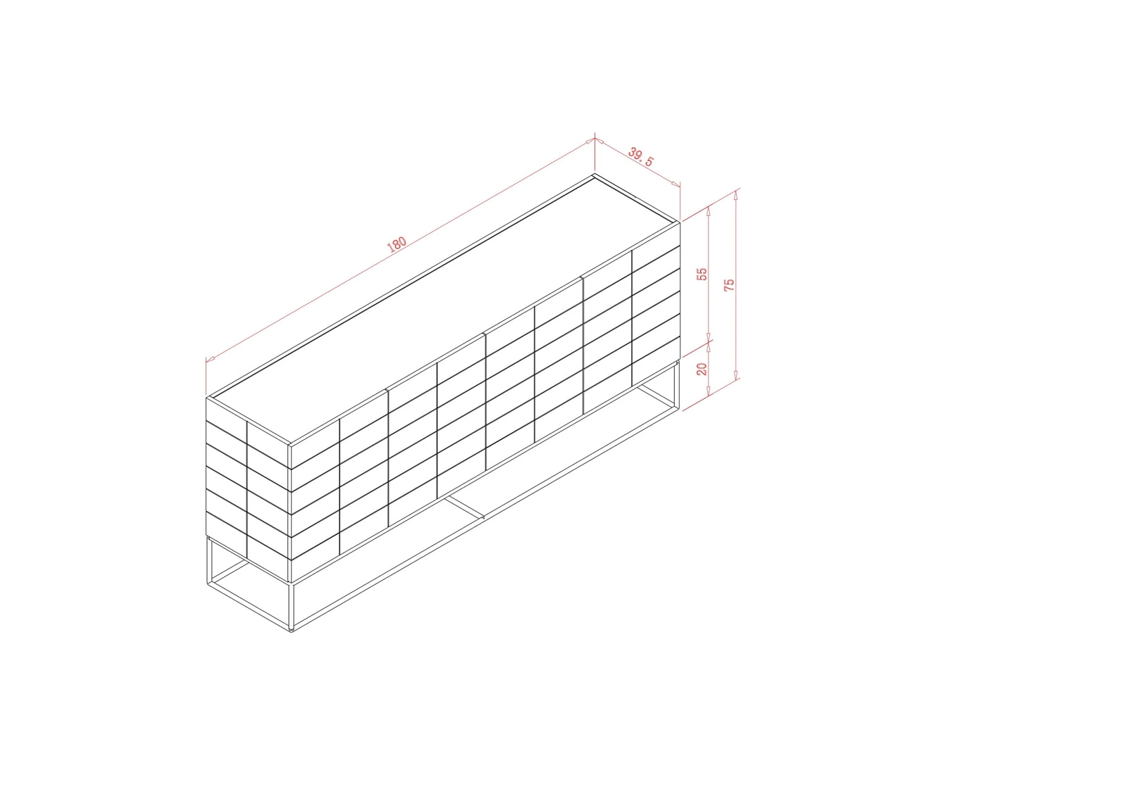 Komoda posiada cztery drzwi oraz cztery przestronne półki, które oferują dużo miejsca do przechowywania. Zastosowany system soft close 165° sprawia, że zamykanie drzwi jest ciche i bezpieczne, eliminując możliwość trzaskania czy uszkodzenia mebla. Duże wymiary komody (180 cm szerokości, 39,5 cm głębokości i 75 cm wysokości) sprawiają, że jest idealna zarówno do salonu, jadalni, jak i sypialni, umożliwiając porządkowanie najważniejszych rzeczy w estetyczny sposób.