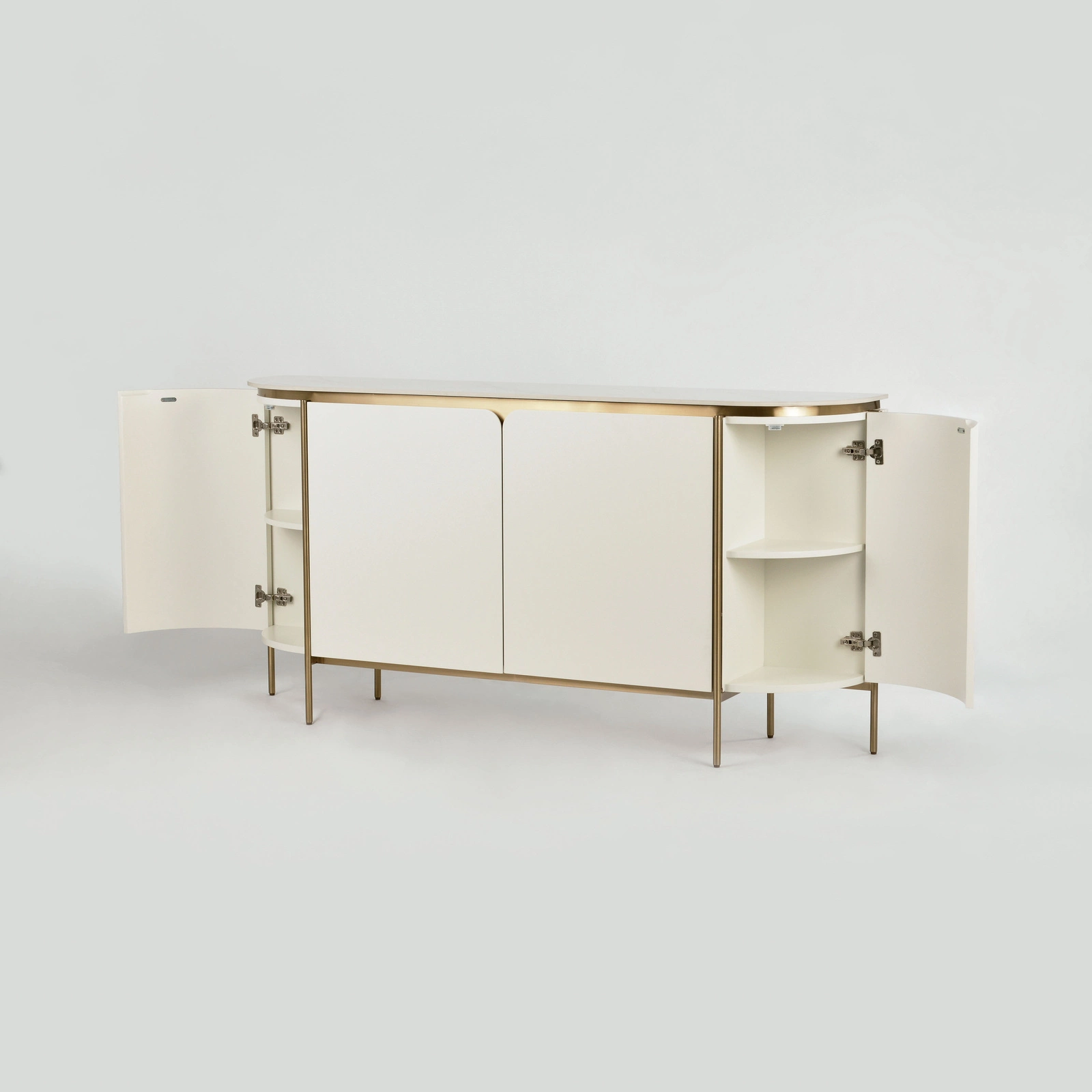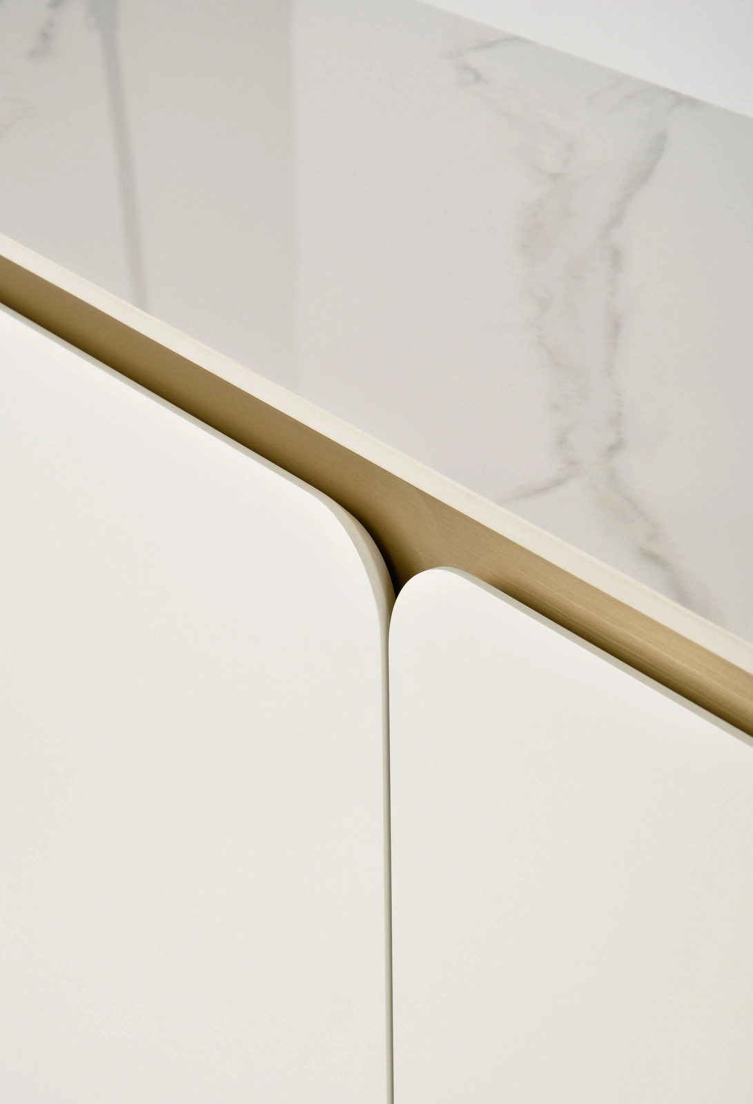Komoda Stilig ST121 to doskonałe połączenie nowoczesnego designu i praktycznych rozwiązań, które sprawdzą się w każdym wnętrzu. Wykonana z wysokiej jakości materiałów, takich jak MDF, marmur syntetyczny oraz stal nierdzewna, prezentuje się niezwykle stylowo i trwałe. Jej ponadczasowa kolorystyka – złamana biel z białym, błyszczącym blatem oraz złotymi nogami i detalami – wprowadzi do Twojego domu niepowtarzalny klimat lekkości i luksusu.