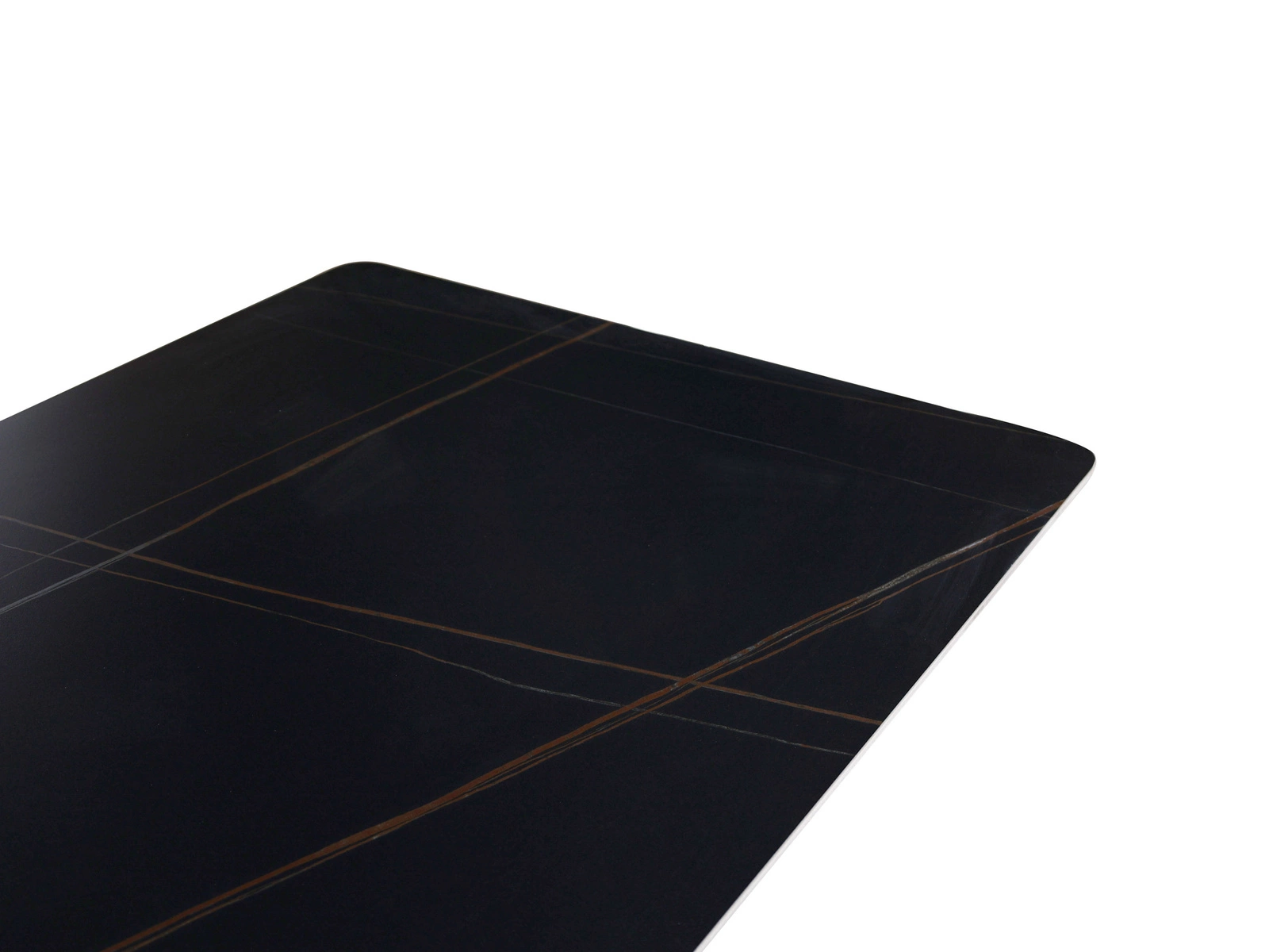 Stół Modig M30 został wykonany z solidnych i trwałych materiałów – podstawa to stal nierdzewna o dekoracyjnym, młotkowanym wykończeniu z chromowanymi detalami, które nadają nogom grafitowy kolor i niepowtarzalny charakter. Blat wykonano z materiału imitującego marmur w kolorze czarnym, wykończonego w półmacie, co podkreśla elegancki i nowoczesny wygląd mebla. Grubość blatu wynosząca 1 cm zapewnia solidność i odporność na codzienne użytkowanie.
