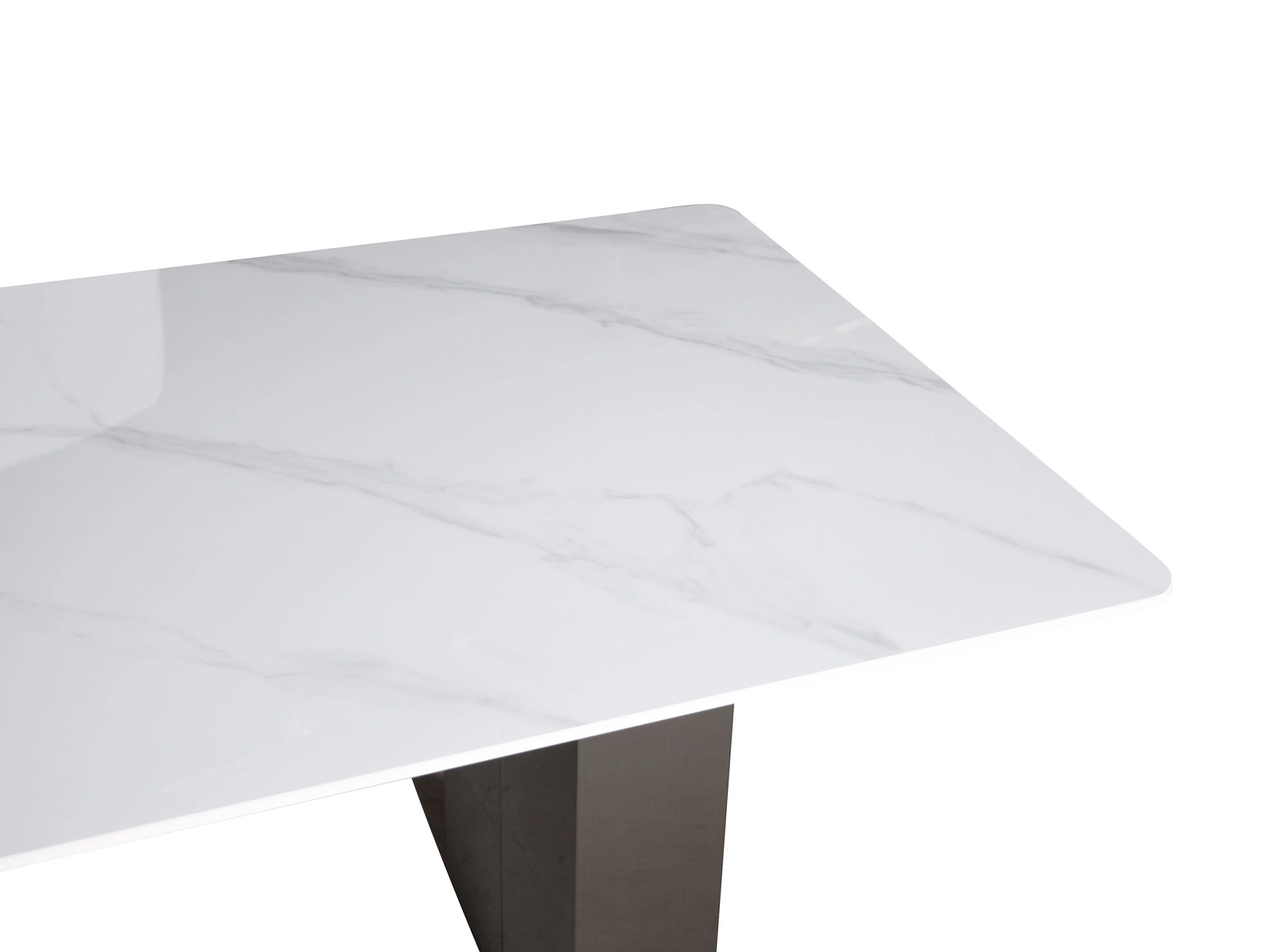 Stół prostokątny Modig M12 to nowoczesny mebel, który doskonale wpisuje się w trendy współczesnego designu. Jego imponująca długość 200 cm i szerokość 100 cm zapewniają przestrzeń idealną zarówno do rodzinnych posiłków, jak i do pracy czy spotkań biznesowych. Blat ze spiekanego kamienia w białym kolorze, imitujący marmur o wysoki połysk, nadaje mu wyjątkowego charakteru i prestiżu. Dzięki temu stół nie tylko pełni funkcję użytkową, ale także staje się stylowym elementem wyposażenia wnętrza.