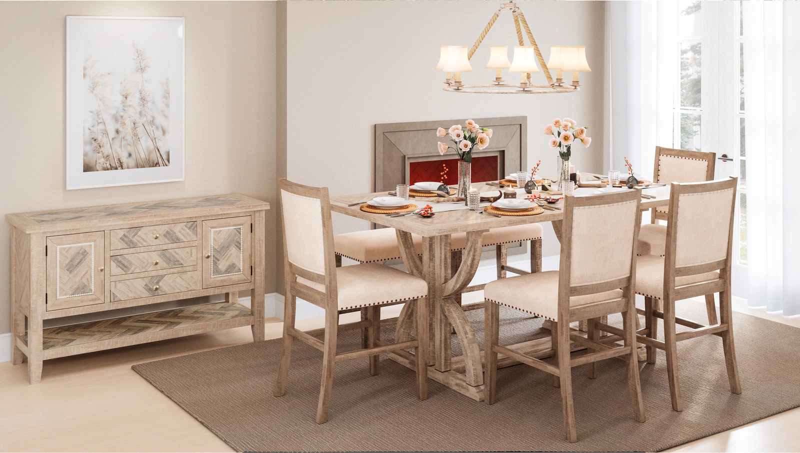 Stół Avola AV1933-78 został stworzony z wysokiej jakości drewna akacjowego, które dzięki swojej trwałości i odporności na uszkodzenia zapewnia długie użytkowanie. Blat stołu wyróżnia się eleganckim wzorem w jodełkę oraz precyzyjną intarsją, co nadaje mu niepowtarzalnego charakteru. Naturalny, jasny kolor drewna sprawia, że mebel świetnie wpasuje się zarówno w nowoczesne, jak i klasyczne aranżacje wnętrz.